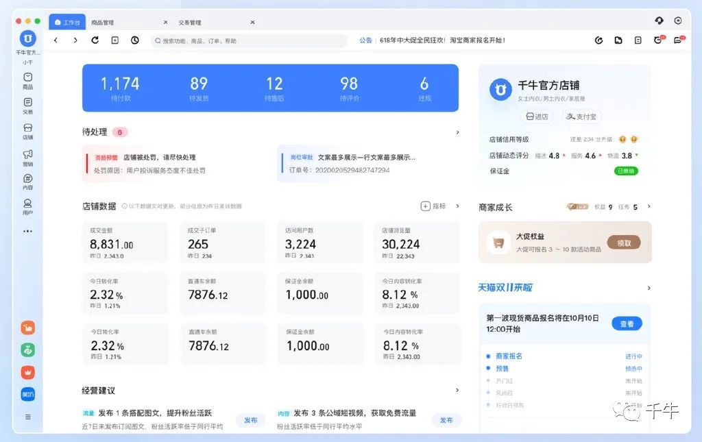 淘寶賣家后臺(tái)“千?!鄙?jí)新版Mac端工作臺(tái)