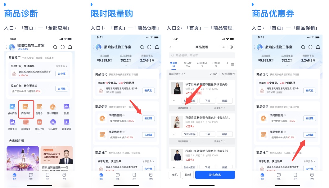 第二,破0階段聚焦于商品運(yùn)營(yíng)動(dòng)作,幫助商家完成快速破零。優(yōu)質(zhì)的商品信息質(zhì)量可豐富導(dǎo)購(gòu)端呈現(xiàn),從而能夠更進(jìn)一步地滿足用戶在抖音客戶端“逛買(mǎi)”訴求。同時(shí)有效的商品關(guān)鍵信息,有助于用戶購(gòu)買(mǎi)決策,并提升用戶購(gòu)買(mǎi)體驗(yàn)及轉(zhuǎn)化、降低平臺(tái)售后風(fēng)險(xiǎn)等。限時(shí)限量購(gòu):商家在自己設(shè)置的活動(dòng)時(shí)間內(nèi)進(jìn)行促銷(xiāo),以低于商品原價(jià)的價(jià)格售賣(mài)商品,一旦超出活動(dòng)時(shí)間或者活動(dòng)商品售罄,商品即刻恢復(fù)原價(jià),刺激消費(fèi)者購(gòu)買(mǎi)欲望,有效提升用戶的下單轉(zhuǎn)化率。商品優(yōu)惠券:提供多種類(lèi)型的商品優(yōu)惠券,屬于日常情景下的降價(jià)促銷(xiāo),助力提升商品的客單價(jià)與復(fù)購(gòu)率,全方位提升商品GMV。