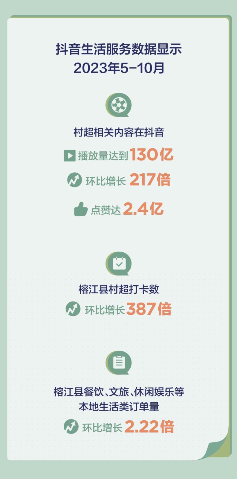 抖音:榕江“村超”帶動(dòng)本地生活訂單量環(huán)比增長(zhǎng)2.22倍